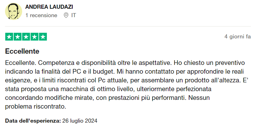 Parlare con un nostro esperto ti permetterà di ottenere una consulenza personalizzata che garantisca che ogni dettaglio della tua workstation sia progettato per offrirti la massima performance e affidabilità.