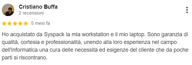Ogni componente di una workstation Syspack è selezionato per garantire la massima affidabilità. Lavoriamo per assicurarti che il tuo flusso di lavoro sia sempre ottimizzato e privo di interruzioni. Inoltre, offriamo un'assistenza tecnica pronta e competente, pronta a risolvere qualsiasi problema tu possa incontrare.