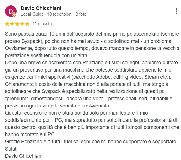 Il nostro impegno non finisce con l'acquisto. Syspack offre un supporto post-vendita dedicato per garantire che la tua workstation continui a funzionare al meglio. La nostra squadra di esperti è sempre disponibile per consulenze personalizzate e assistenza tecnica, assicurando che tu possa concentrarti sul tuo lavoro senza preoccupazioni.