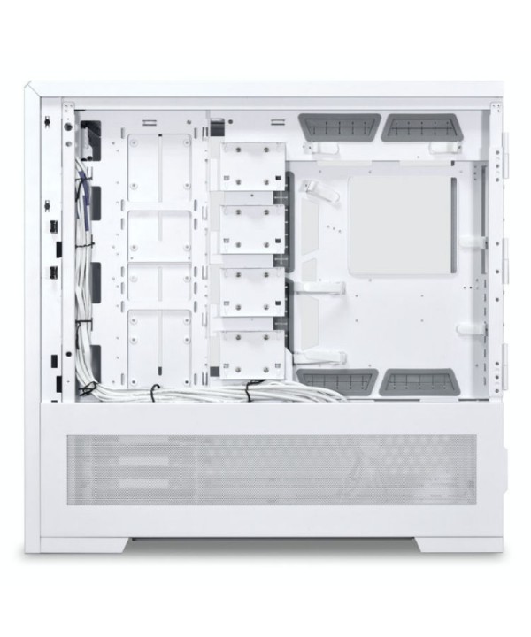 Il Lian Li V3000 Plus GGF Edition è un case full tower innovativo e altamente regolabile che presenta tre diverse modalità; Sistema standard, ruotato e doppio. Con la sua spaziosa cavità interna, puoi costruire un PC da gioco impressionante dotato di tutto l'hardware moderno più recente, come schede madri E-ATX ed EEB o GPU lunghe fino a 589 mm. Mantieni il tuo PC da gioco alla temperatura ottimale, grazie agli eleganti pannelli a rete, alla capacità di un massimo di sedici ventole e ai supporti multipli per radiatori. Inoltre, questo chassis sarà un'aggiunta iconica alla tua configurazione di gioco, con la sua finitura bianca, pannelli in vetro temperato colorato e una sottile illuminazione RGB completa di proiezione del logo Lian Li.