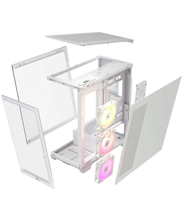 Con il 3500X, Corsair presenta un tower che, nonostante le sue dimensioni compatte, offre più che abbastanza spazio per i tuoi componenti di fascia alta. Il pannello laterale e quello frontale sono realizzati in vetro temperato, offrendo una visione perfetta dell'interno del tuo case.