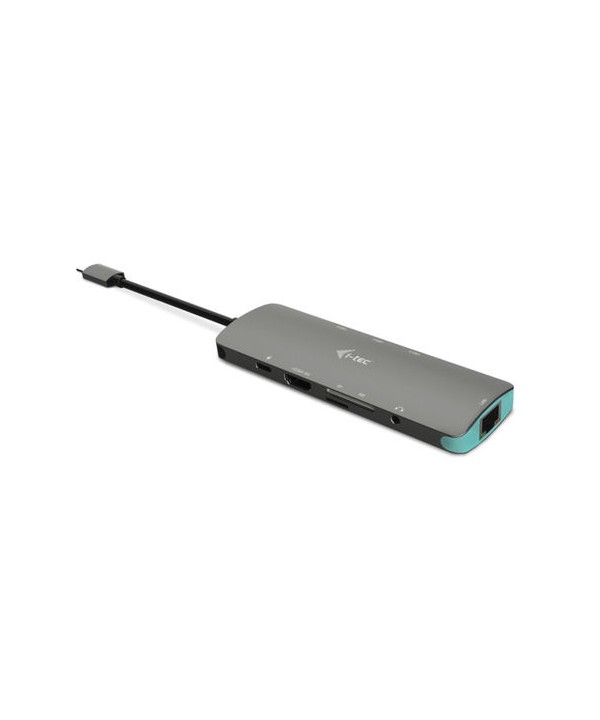 Descrizione prodotto lungo: Stazione dock USB-C Metal Nano della i-tec – 1 porta HDMI 4K Ultra HD 3840×2160@30Hz, 1 lettore di schede SD, 1 lettore di schede microSD, 1 porta RJ-45 Ethernet GLAN, 1 connettore audio jack combo, 3 porte USB 3.0 e 1 porta USB-C Power Delivery (100 W) compatibile con Thunderbolt 3