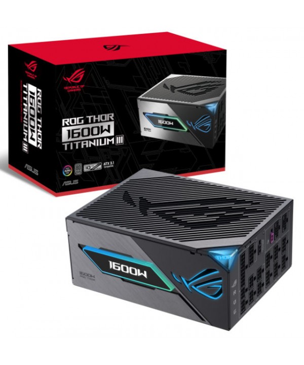 Il ROG Thor 1600 W Titanium III è un alimentatore di riferimento per build estreme: offre 1600 W di potenza, certificazione 80 PLUS Titanium, tecnologie all'avanguardia come GaN MOSFET e stabilizzatore “GPU‑First”.