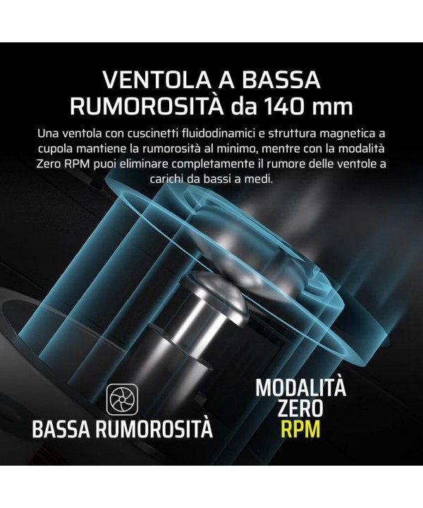 Ventola: 140 mm con cuscinetti fluidodinamici con modalità Zero RPM a basso carico