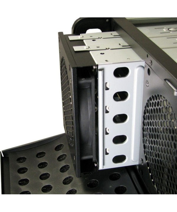 Nella parte anteriore sono presenti due drive cage , ciascuno con una ventola da 120 mm. Altre tre ventole da 120 mm sono installate internamente e due ventole da 80 si trovano nella parte posteriore. La parte anteriore ha un inserto del filtro antipolvere rimovibile per un'efficace protezione dalla polvere . Oltre agli alloggiamenti per unità, dietro lo sportello anteriore bloccabile si trovano tre alloggiamenti esterni per unità da 5,25 pollici, i LED di stato e una porta USB 2.0 e una porta USB 3.0.