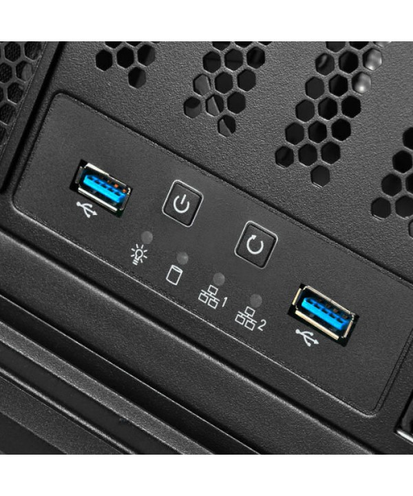 SilverStone ha pensato anche a dissipare il calore generato durante il funzionamento continuo. È possibile collegare una ventola da 120 mm a ciascuna delle due gabbie da 3,5 pollici per consentire il raffreddamento diretto dei dischi rigidi installati. Sul retro possono essere fissate anche due ventole da 80 mm. Una ventola da 120 mm nella parte anteriore e una ventola da 80 mm nella parte posteriore del case sono incluse franco fabbrica, in modo da fornire aria fresca e dissipare il calore. I filtri sulla parte anteriore impediscono l'ingresso di polvere. La porta d'ingresso è chiudibile a chiave. Le schede madri in formato Mini-ITX, Micro-ATX, ATX o SSI-CEB