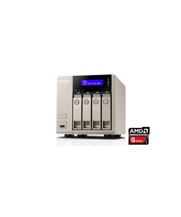 | Hard Disk Drive | 4 x 3.5”or 2.5”SATA 6Gb/s, SATA 3Gb/s hard drive or SSD NOTE: 1. The system is shipped without HDD. 2. For the HDD compatibility list, please visit https://www.qnap.com/compatibility/ |