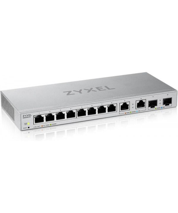 Lo Zyxel XGS1010-12 è uno switch gestito progettato per offrire massima velocità e flessibilità nella gestione della rete. Dotato di otto porte Gigabit Ethernet, due porte 2.5G e due porte SFP+ da 10Gb, permette di trasferire rapidamente i dati tra dispositivi client, server NAS e infrastrutture di rete avanzate.