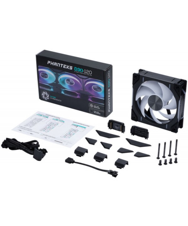 3 Ventole PWM D-RGB da 120mmProfondità da 30mm con pale maggiorateCollegamento con clip senza fili
